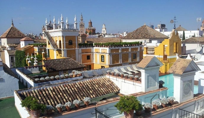 The hotel has an outdoor swimming pool on a rooftop, where you can take a refreshing dip, overlooking the famous Giralda and the rooftops of Seville. This pool is equipped with jacuzzi area, water jets for swimming against current and back jets. It is free for our customers. Open during the summer season, it offers a bar service from May to October.